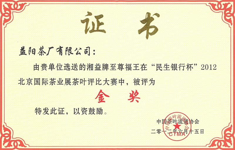 獲北京國際茶展民生銀行杯金獎