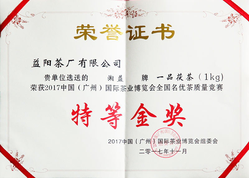 中國(廣州)國際茶葉博覽會(huì )特等金獎