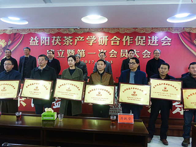 2017年3月13日,益陽(yáng)茯茶產(chǎn)學(xué)研合作促進(jìn)會(huì )成立暨第一次會(huì )員大會(huì )在湖南省益陽(yáng)茶廠(chǎng)有限公司隆重舉行。
