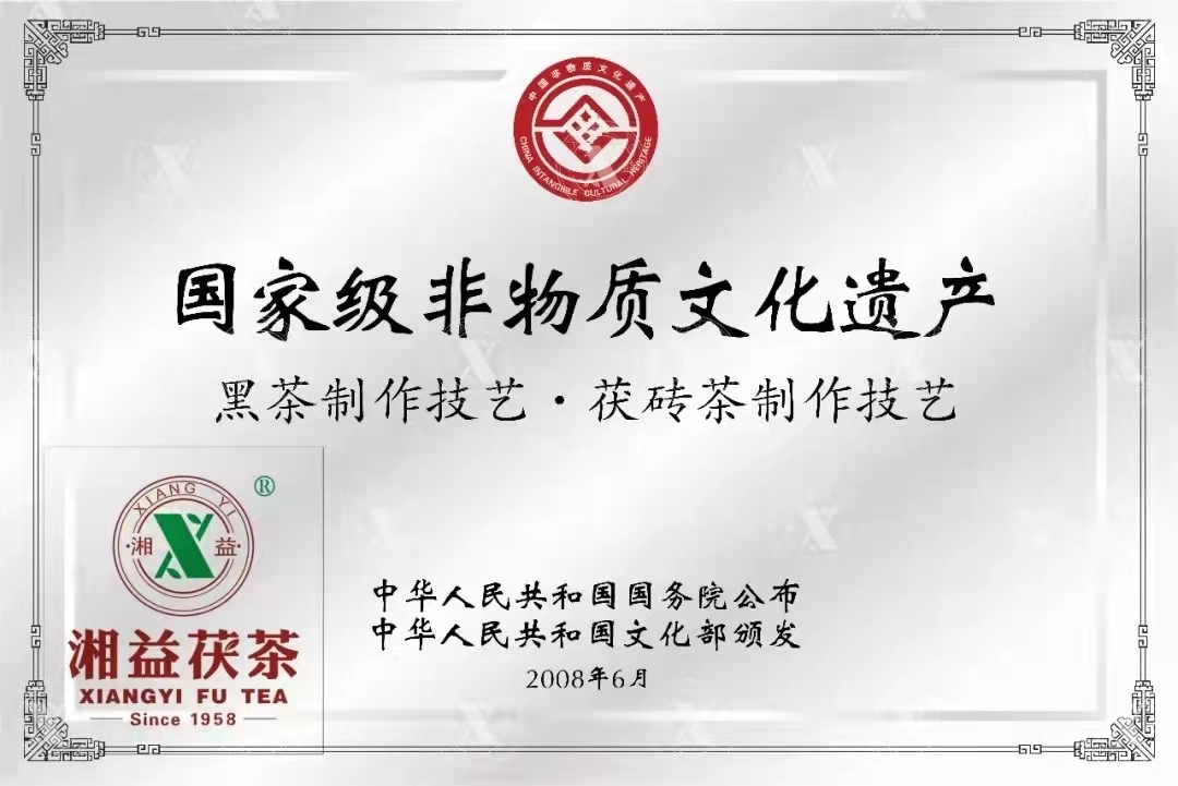 非物質(zhì)文化遺產(chǎn)是中華文化的瑰寶,茯磚茶制作技藝因其悠久的歷史文化、精湛的傳統技藝、獨特的品質(zhì)要求,于2008年被列入國家非物質(zhì)文化遺產(chǎn)保護名錄,益陽(yáng)茶廠(chǎng)有限公司被認定為益陽(yáng)茯磚茶技藝的唯一傳承保護單位。