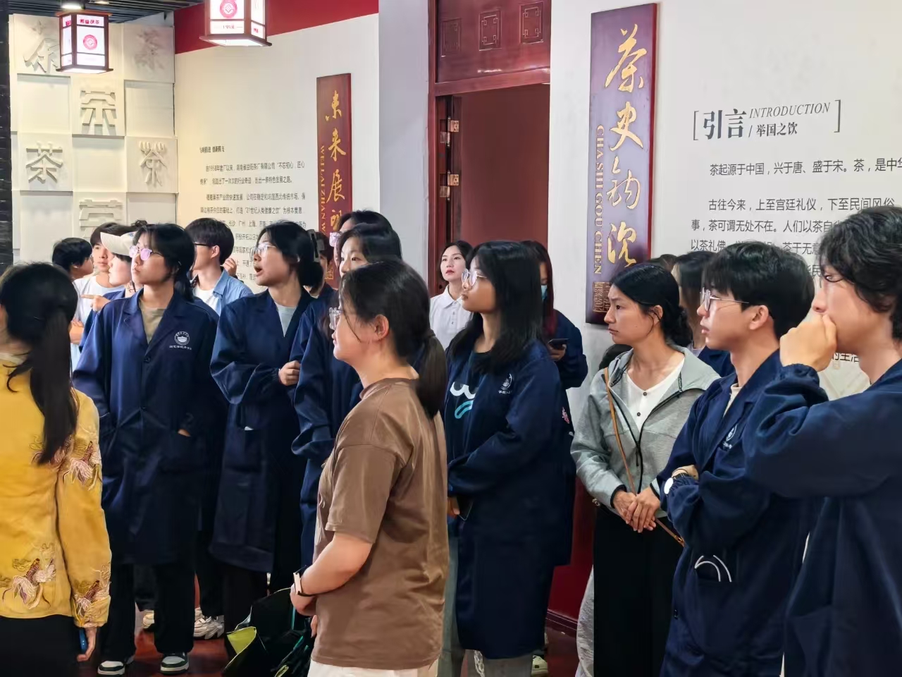 師生們首先實(shí)地參觀(guān)了湘益生產(chǎn)線(xiàn)與茶博館。在生產(chǎn)車(chē)間,同學(xué)們親身感受益陽(yáng)茶廠(chǎng)標準化、現代化的生產(chǎn)流程,對茯磚茶的制作工藝有了初步直觀(guān)的了解。茶博館內陳列的一件件展品,則如同一部生動(dòng)的茶文化史書(shū),讓師生們沉浸式領(lǐng)略益陽(yáng)茶廠(chǎng)深厚的文化底蘊,探尋茯茶的前世今生,深刻體會(huì ) “一片茶葉承載的使命”。
